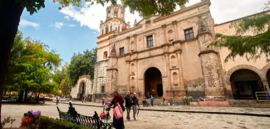 Coyoacán, antiguo pueblo, que la Ciudad, al ir creciendo, lo envolvió hasta convertirlo en un barrio pintoresco en el cual sobresale la majestuosa iglesia de San Juan Bautista.